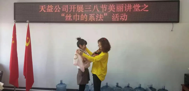 3月8日上午,天益公司舉辦了慶祝“三八節(jié),絲巾造型歡樂賽”活動,向偉大而無私奉獻的女性同志們致以節(jié)日的問候。